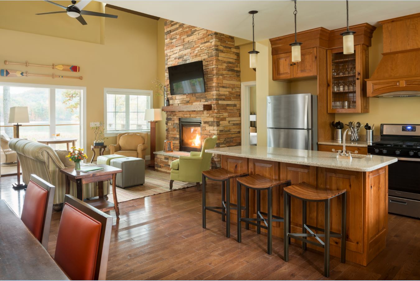 Nestled along Stonewall Resort State Park’s Peninsula East, our ever-expanding Lake House Collection rests under the lush canopy of beautiful hardwood trees. The Lake Houses offer 2, 3 and 4-bedroom designs and spacious common areas with cozy fireplaces — perfect for spending quiet time with the people who matter most.
