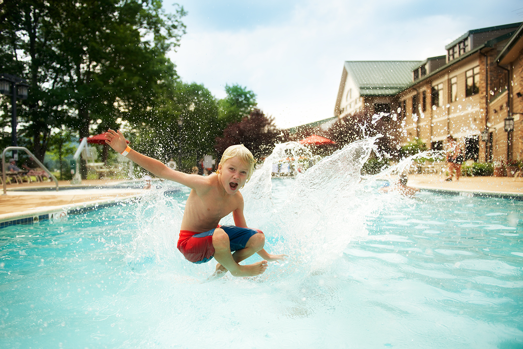 Our West Virginia resort's heated indoor/outdoor pool and patio area is our most popular gathering spot, in every season.
